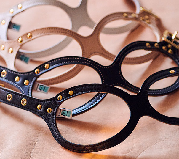 メガネハーネス、リード、首輪など、手作りにこだわった本革のアイテムを販売。サイズ展開も豊富で、小型犬から大型犬まで、愛犬にぴったりのアイテムが見つかる